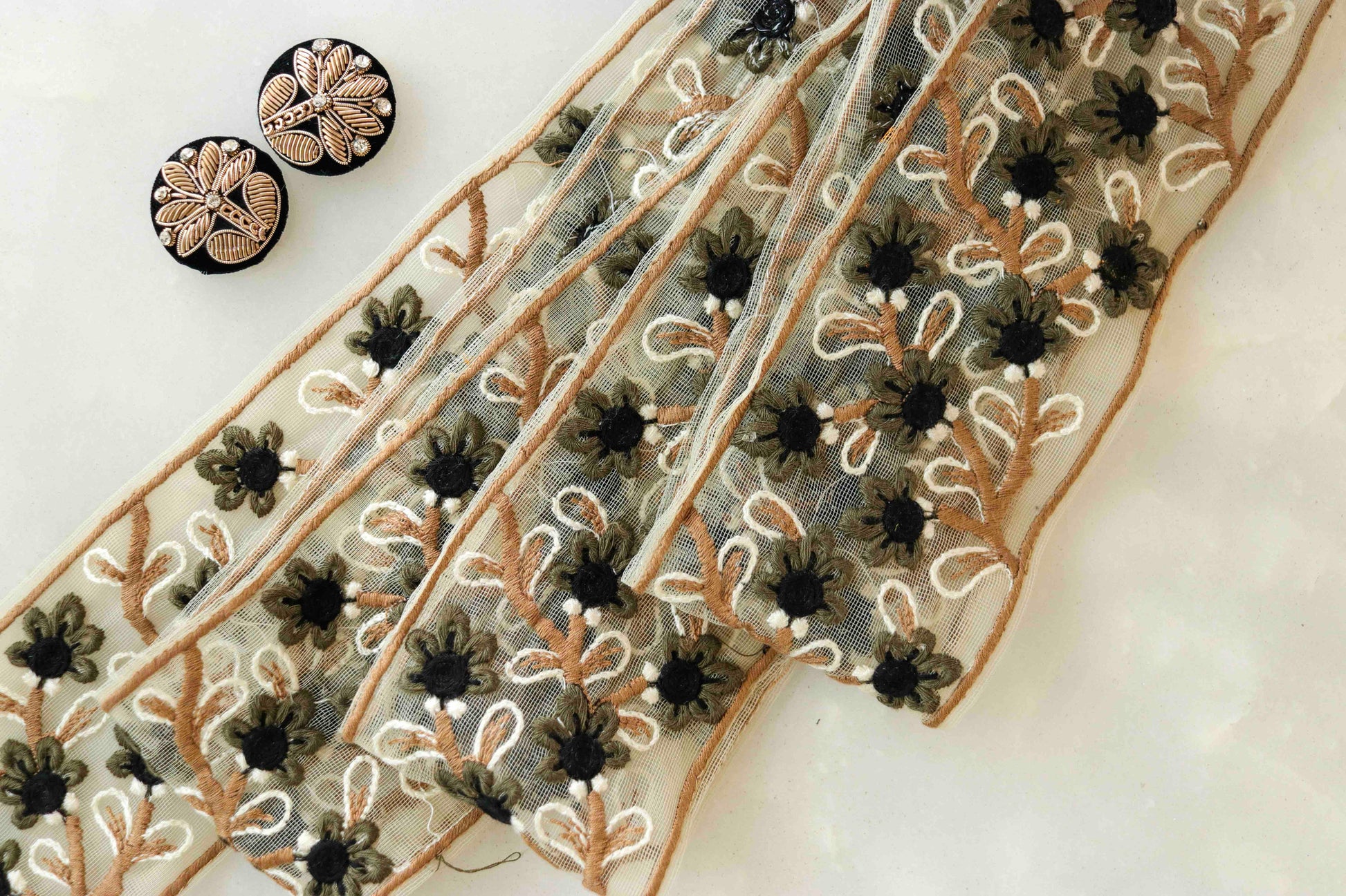 Use it to embellish your denim jackets, or border your sarees. Or create home décor like lamps or curtain ties. Or accessories like hair bands. One trim, countless possibilities.