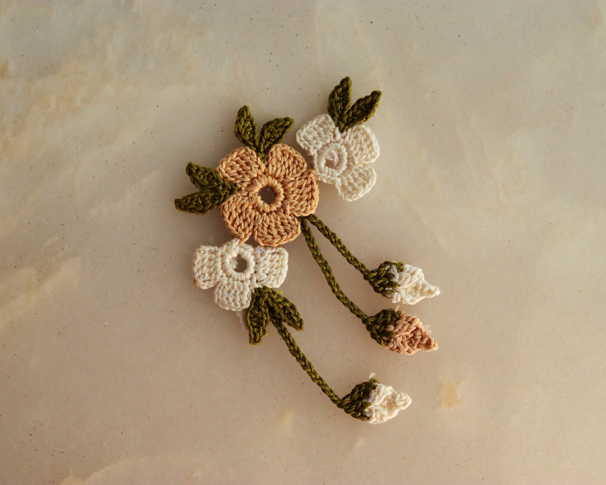 Beige White Crochet Floral patch,Embroidered Floral bouquet applique, Colourful fabric patch,Quirky Boho DIY Floral Patch