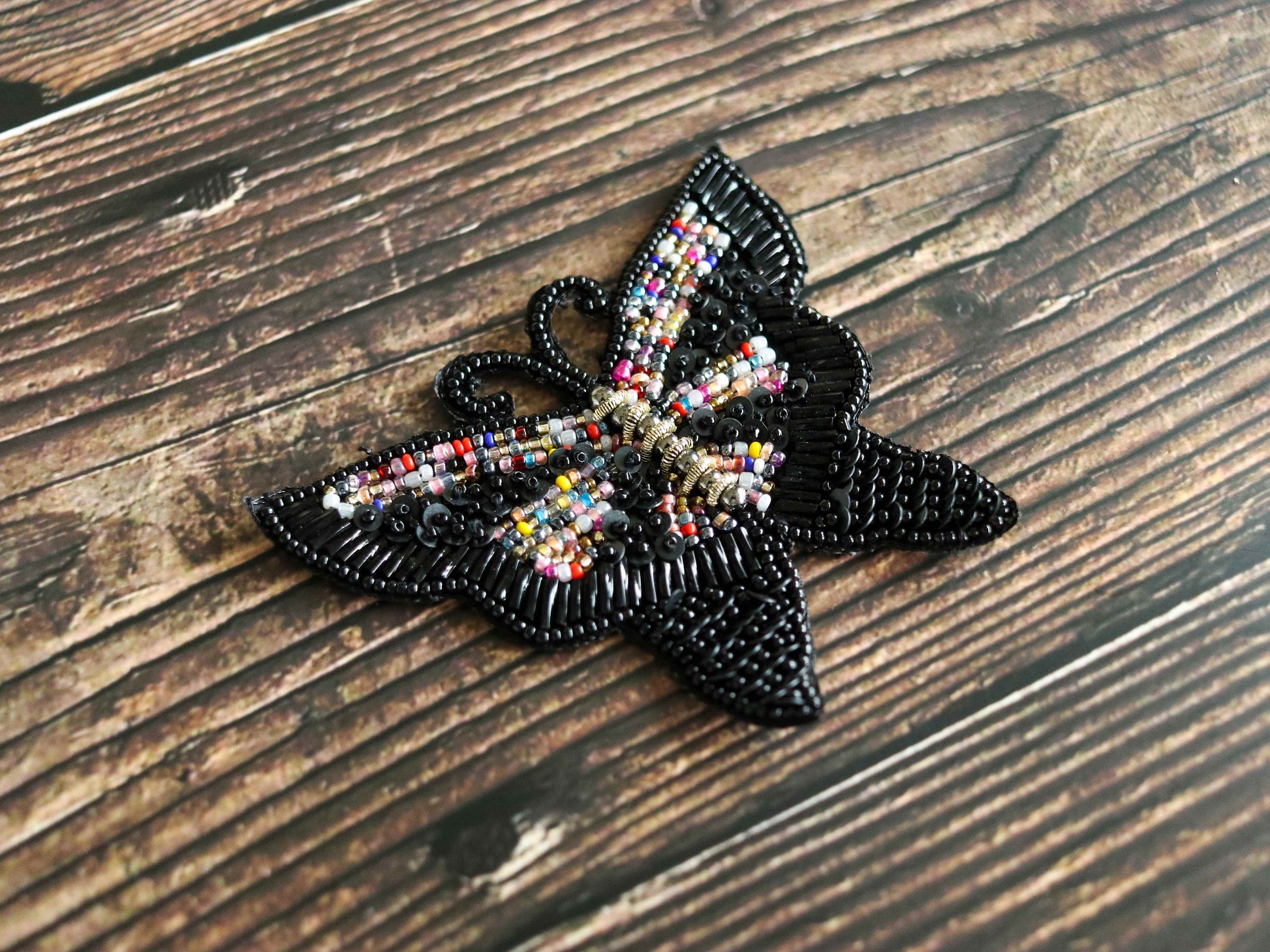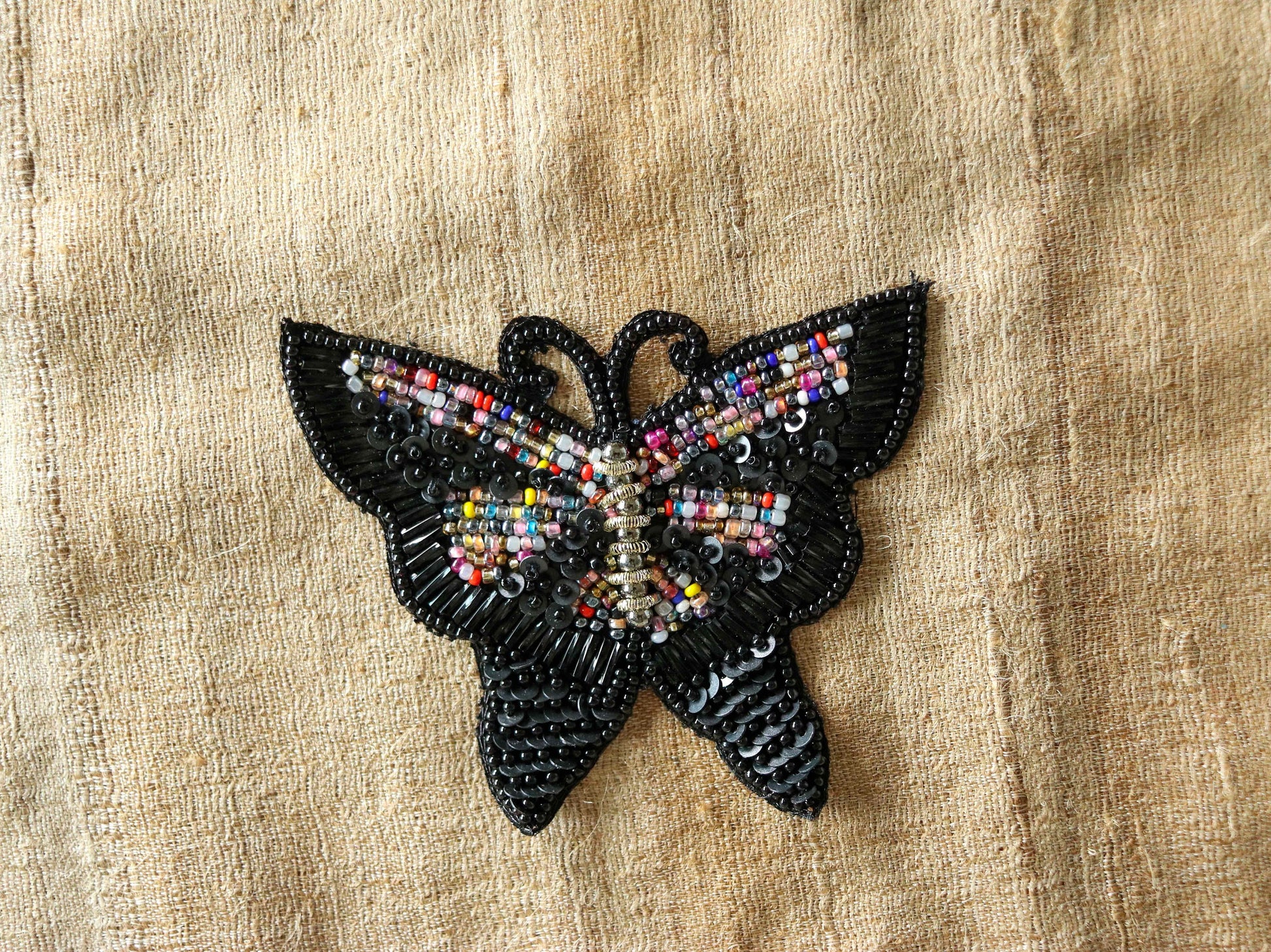 Black Butterfly Beaded Patch,Handmade Embroidered Black Insect Applique, Boho Quirky Butterfly Patch,DIY Patch