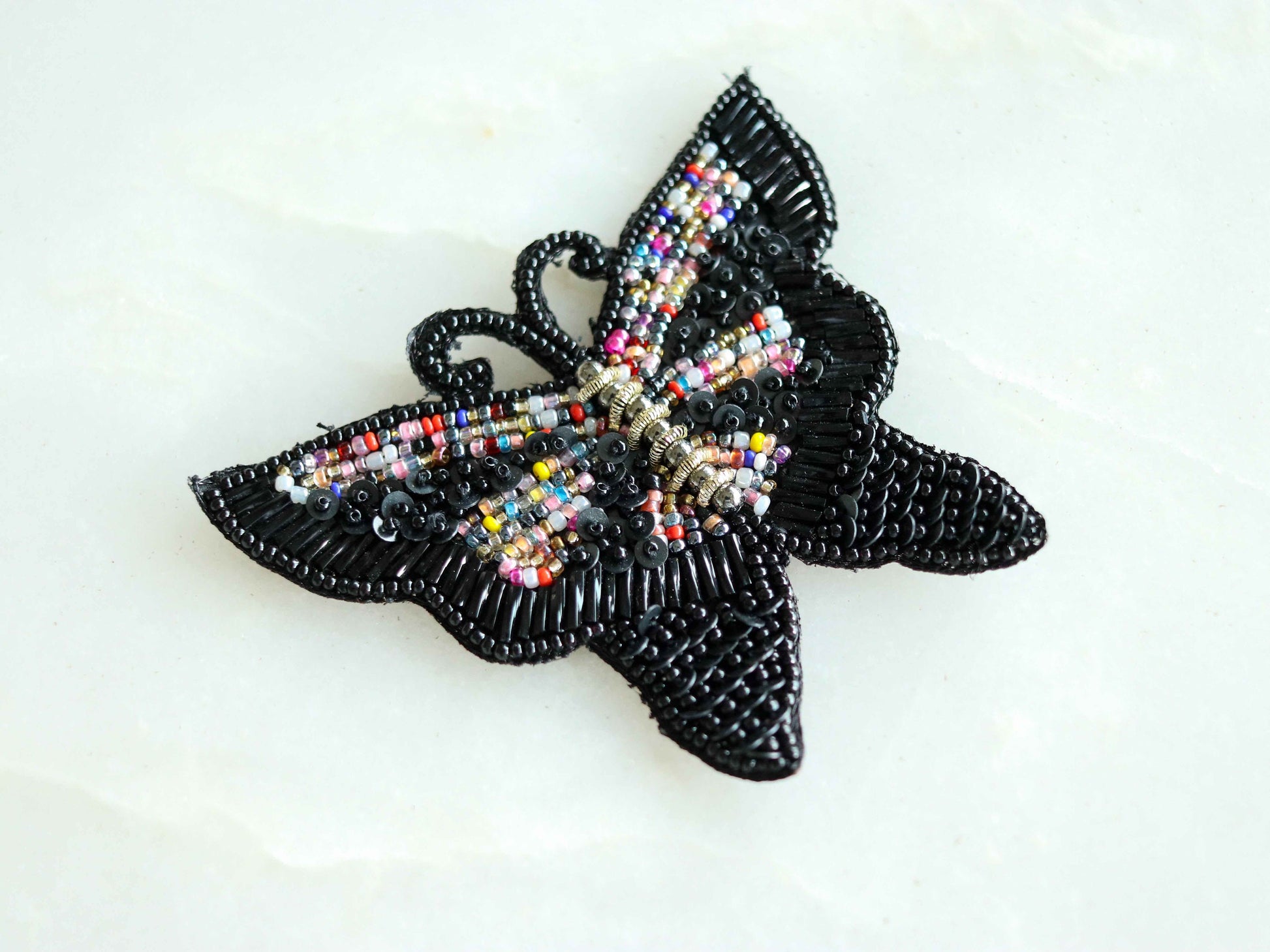 This gorgeous handmade patch captures the beauty of a butterfly. Created with dark black beads and sequins in different sizes. And some multicolour small beads to add a dash of colour. Each detail of the butterfly brought out with love and with different elements. Adding just the right amount of sparkle to your day.