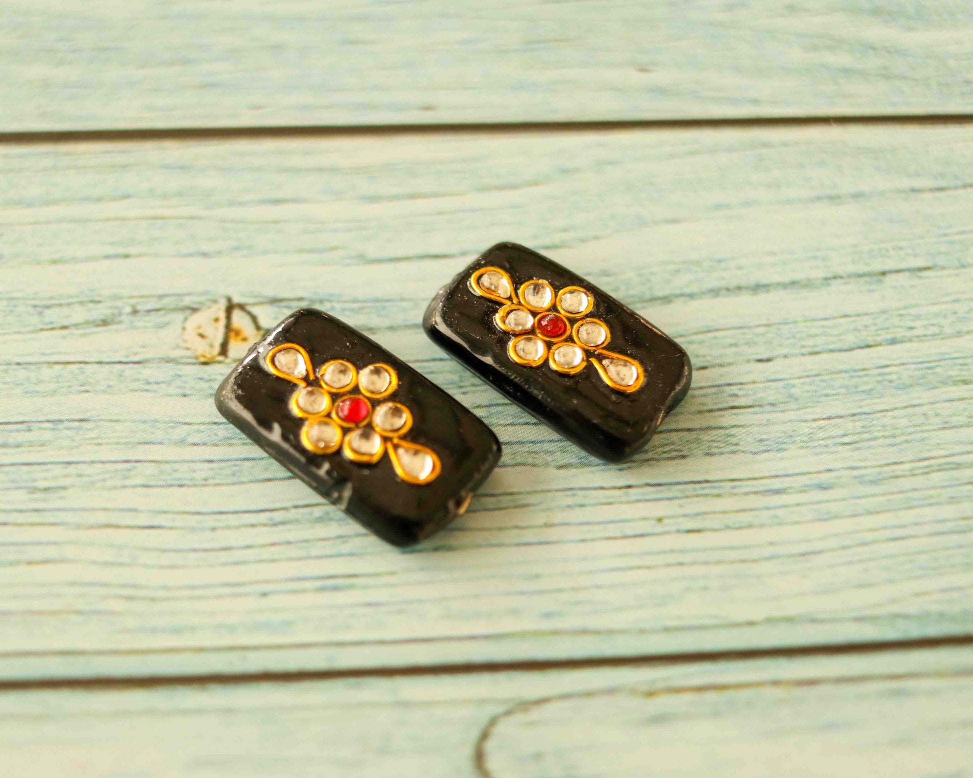 Black Glass Kundan Indian Button,Black White Kurta Button, Jaipur Kundan Charm,Indian Jewellery Ornament Trinket,Sherwani Button,2 pieces