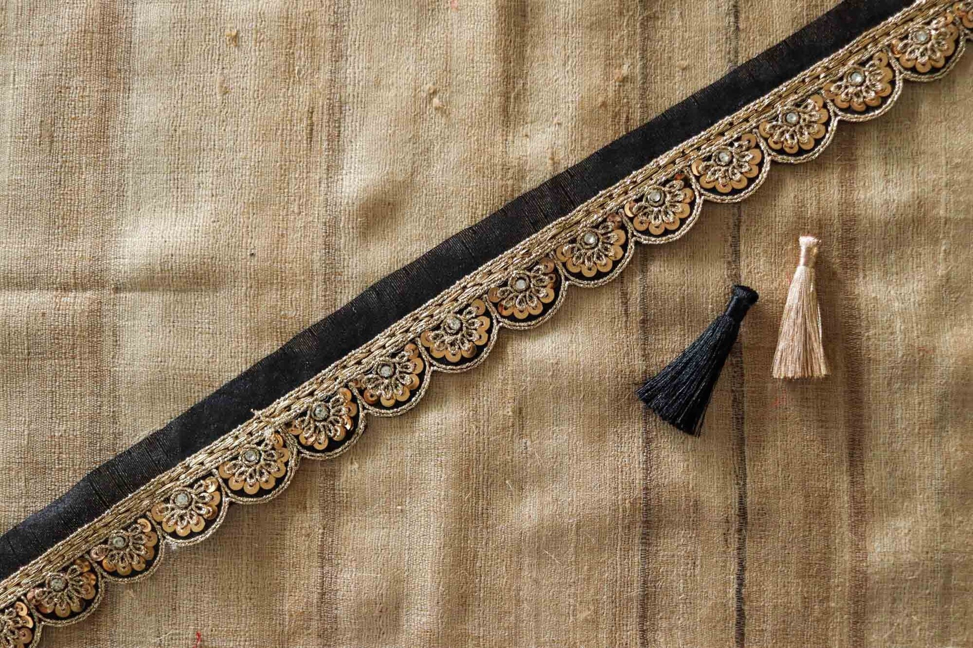 Use it to embellish your denim jackets, or border your sarees. Or create home décor like lamps or curtain ties. Or accessories like hair bands. One trim, countless possibilities.