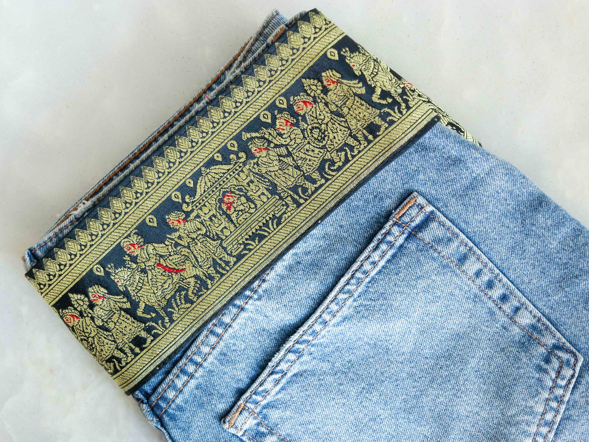 Use it to embellish your denim jackets, or border your sarees. Or create home décor like lamps or curtain ties. Or accessories like hair bands. One trim, countless possibilities.