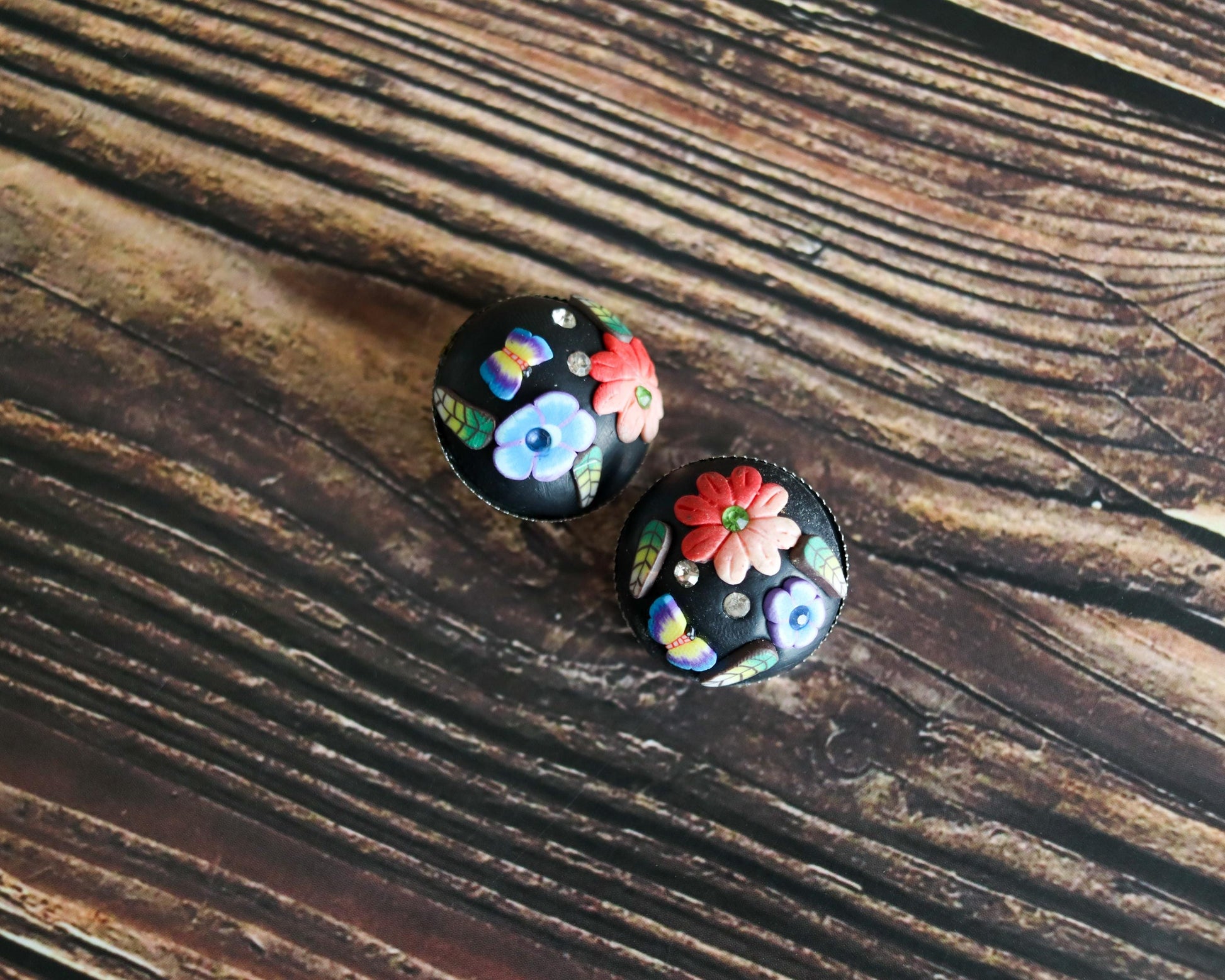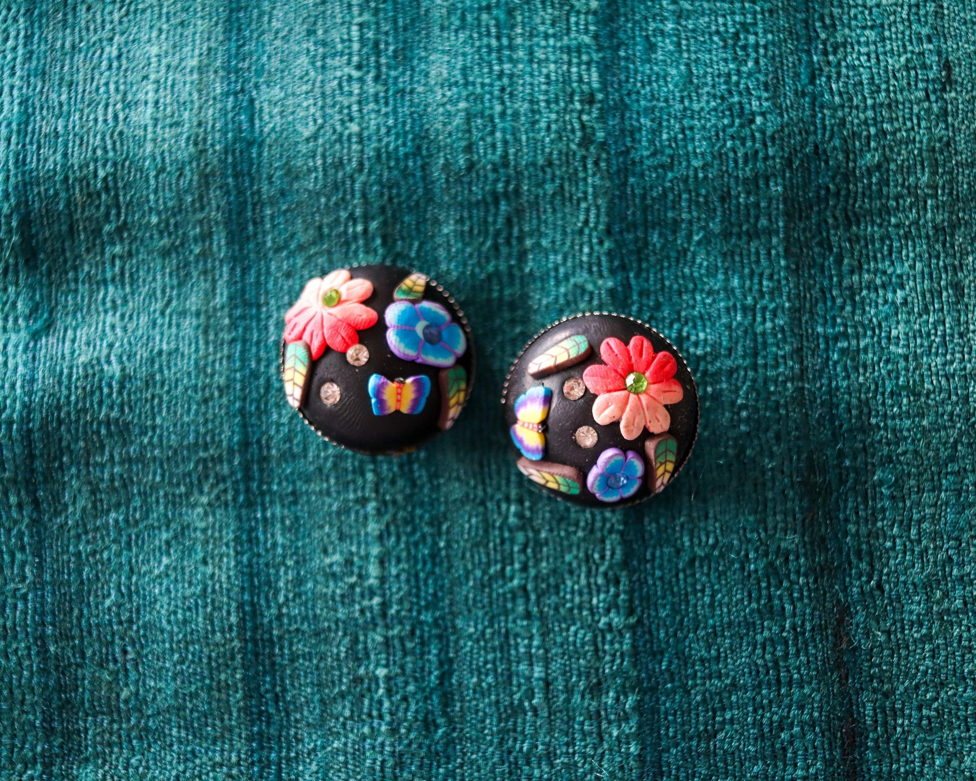 Black Pink Floral Resin Buttons, Handmade Cute Quirky Butterfly Resin Buttons, 3D Miniature Charms, Jacket Tote Bag Sherwani Buttons, 2 pcs