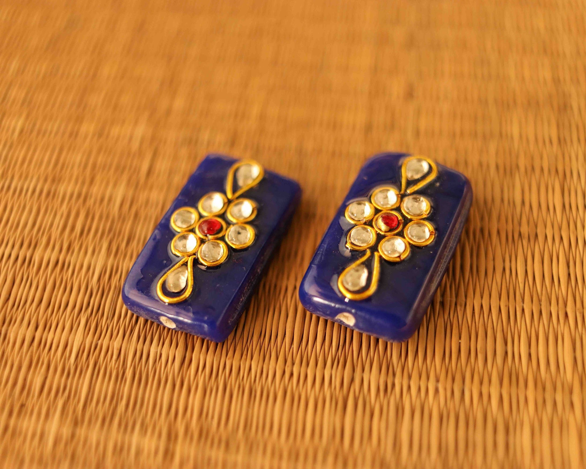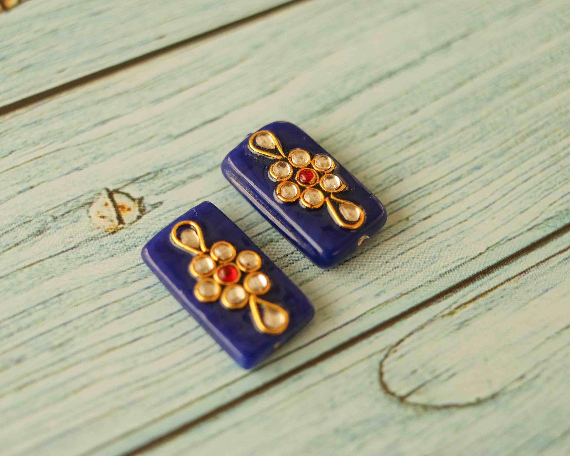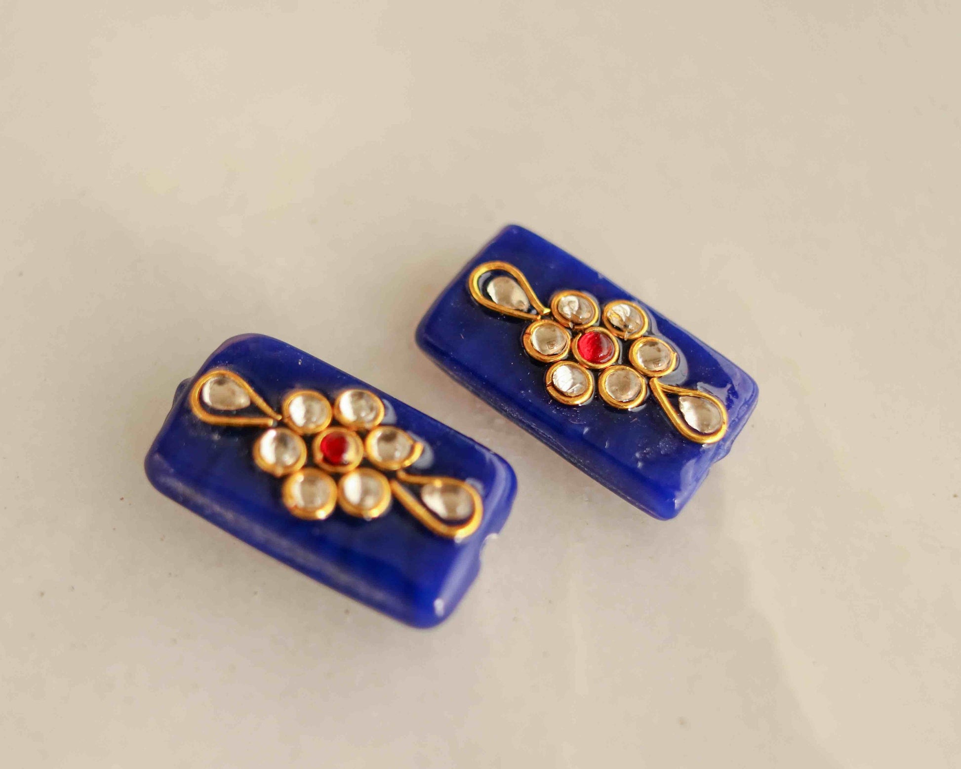 Blue Glass Kundan Indian Button,Blue White Kurta Button, Jaipur Kundan Charm,Indian Jewellery Ornament Trinket,Sherwani Button,2 pieces