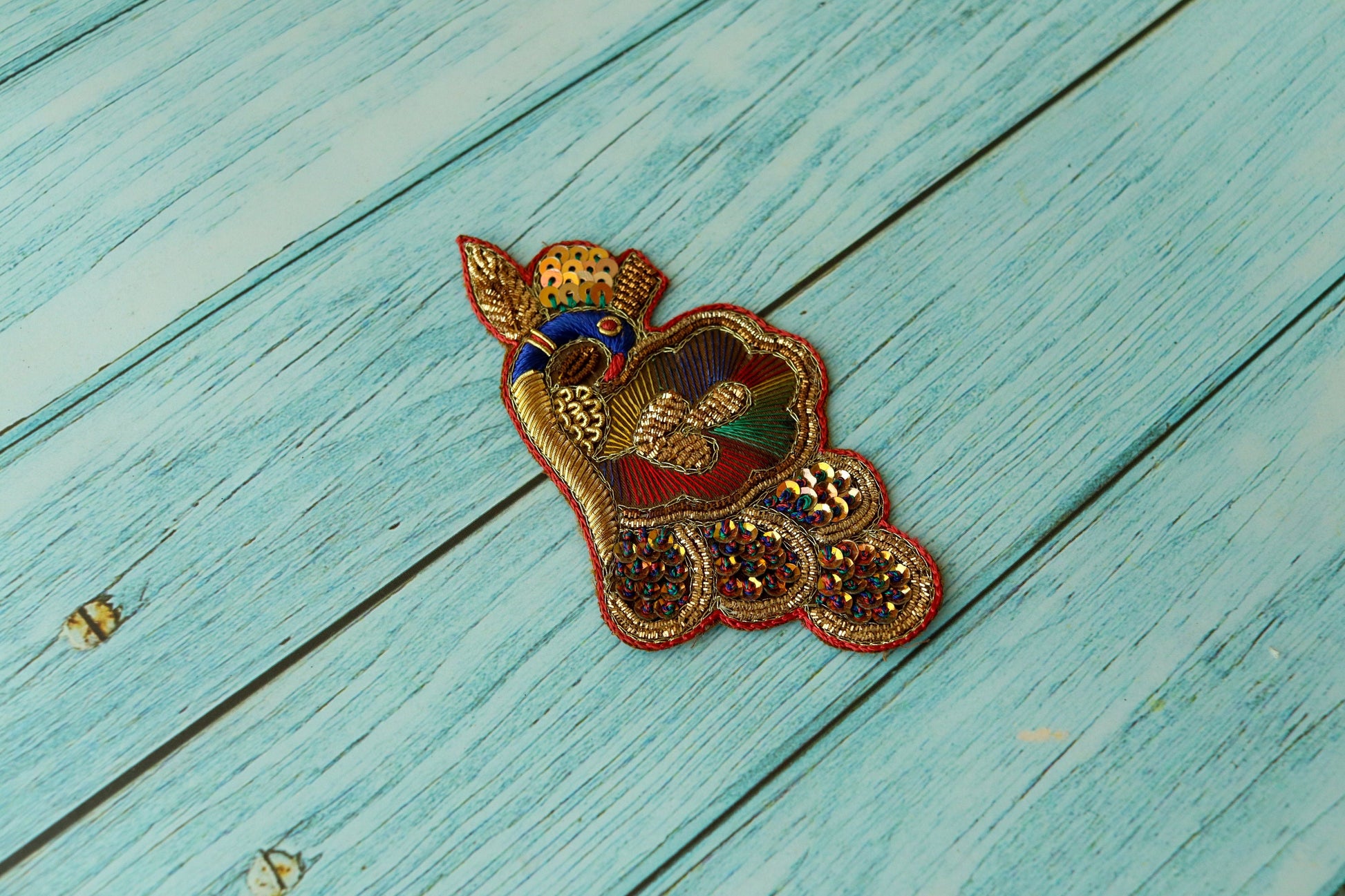 Colourful peacock embroidered patch, Handmade vintage peacock applique, Exotic Indian bird patch, Sew on Applique, DIY Patch