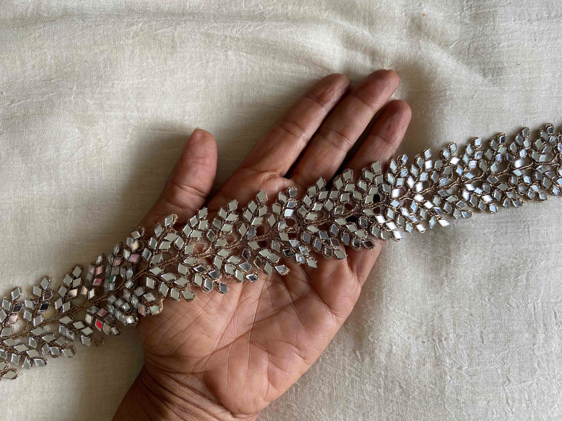 Cutwork Mirror Floral Embroidered Trim,Handmade Thin Gold Mirror Indian Border,Bridal Designer Lace,Mirror Saree Border,Price/mtr