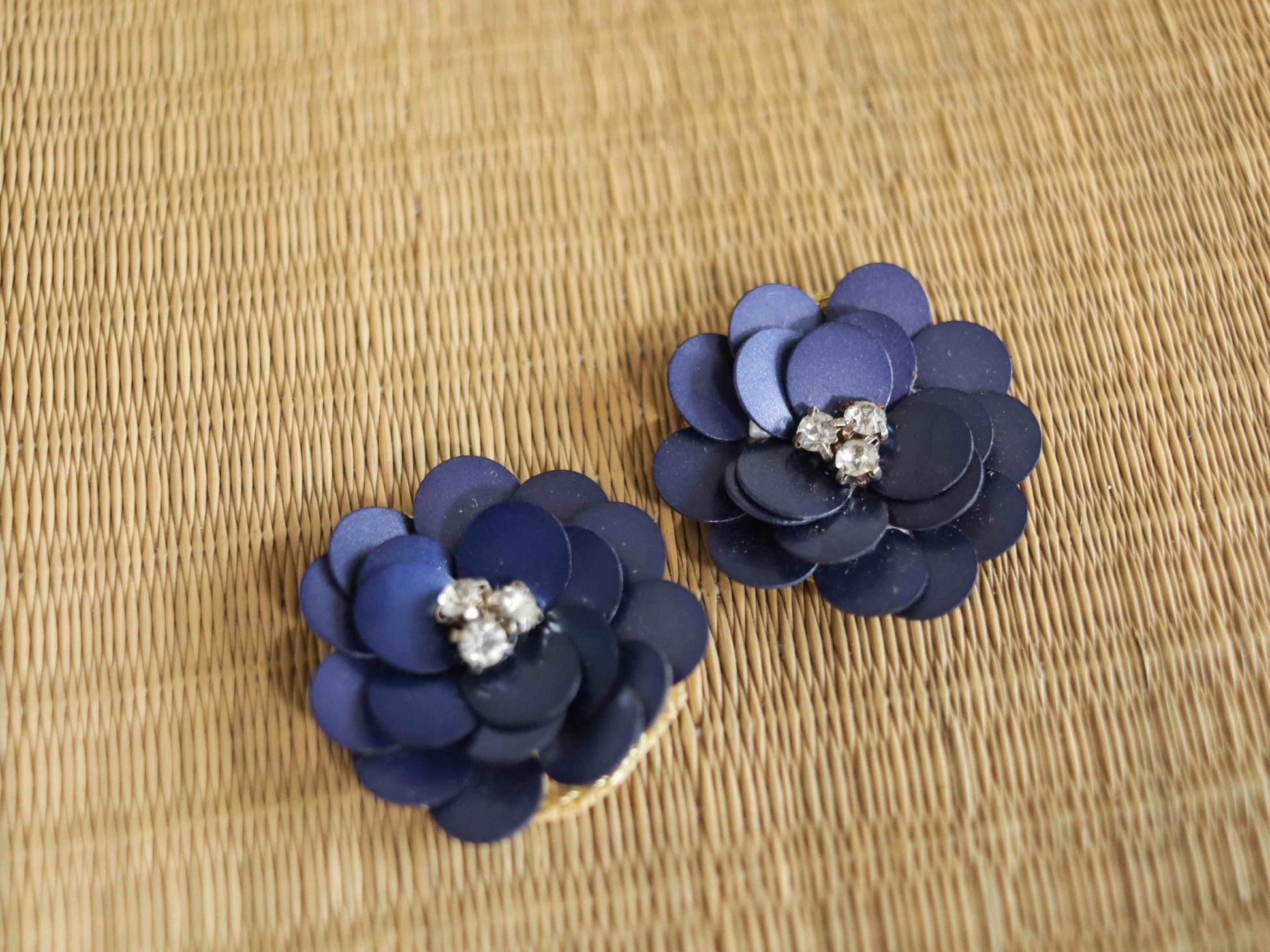 Dark Blue Sequin Floral Buttons,Handmade Deep Blue Rose Buttons,Floral Charms,Jacket Tote Bag Sherwani Kurta Buttons,2 pcs