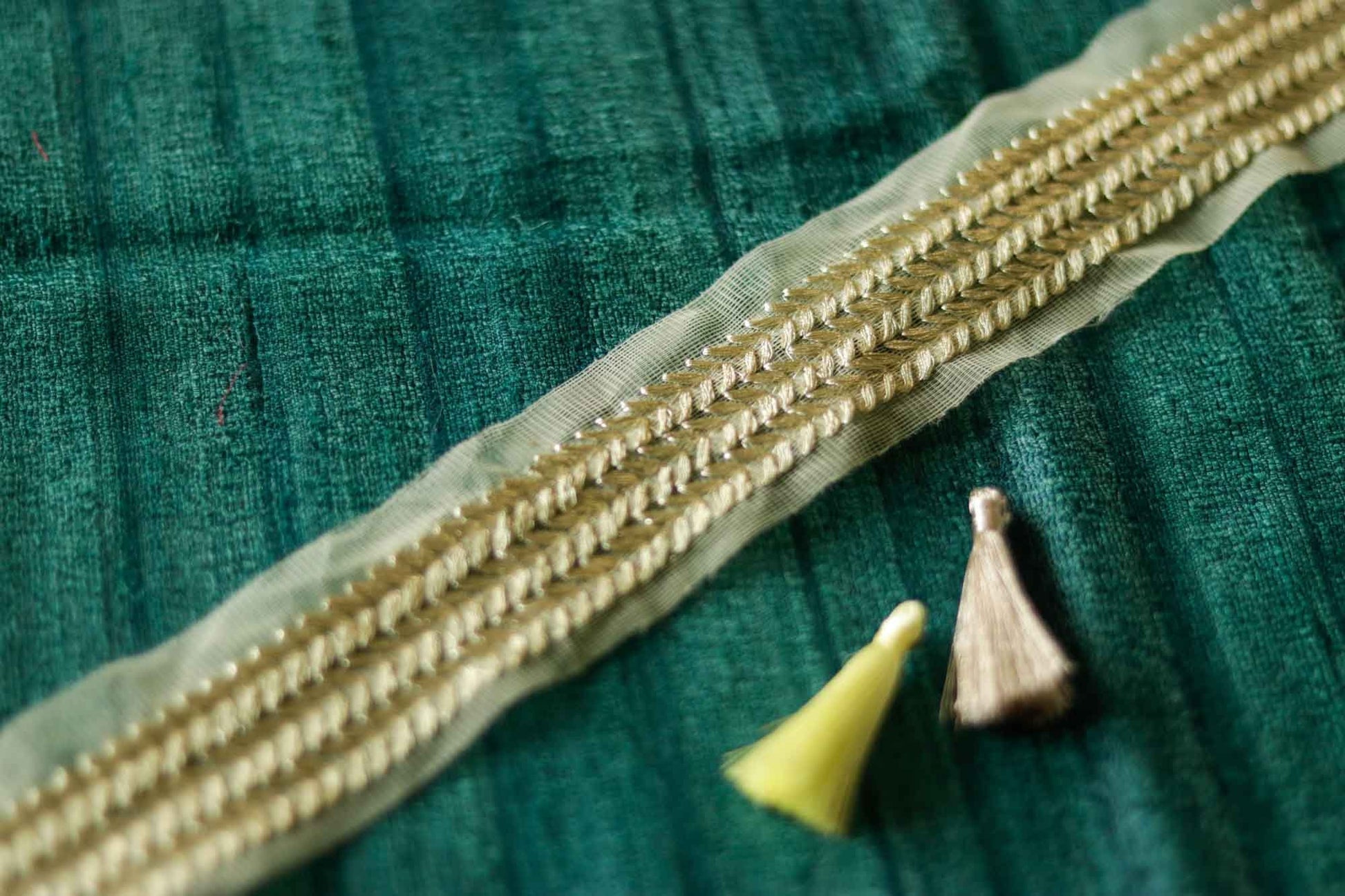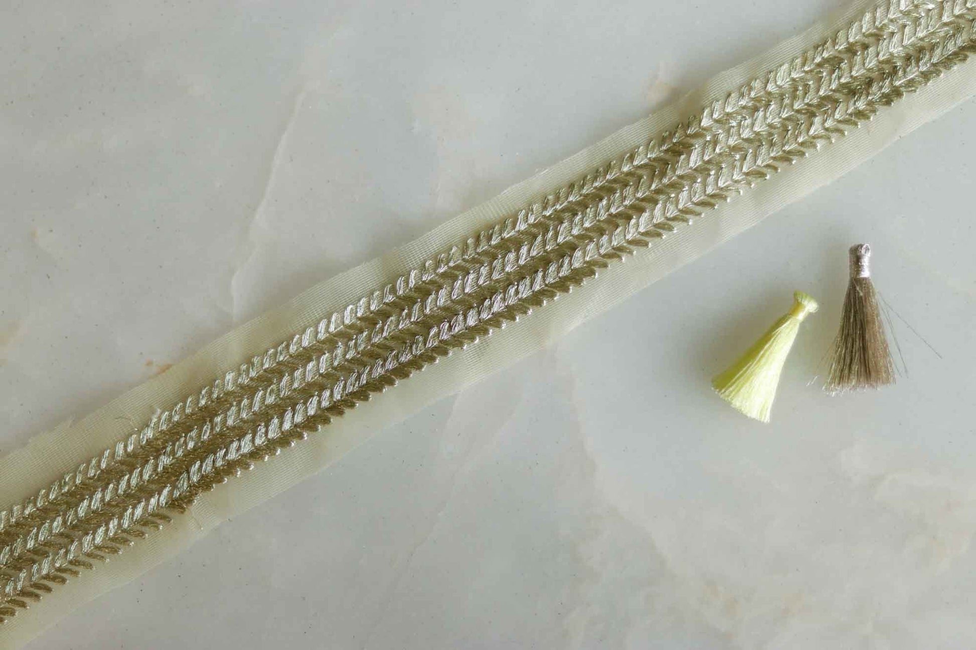 Use it to embellish your denim jackets, or border your sarees. Or make accessories like hairbands or chokers. Or create home décor like lamps, or curtain ties. One trim, countless possibilities.