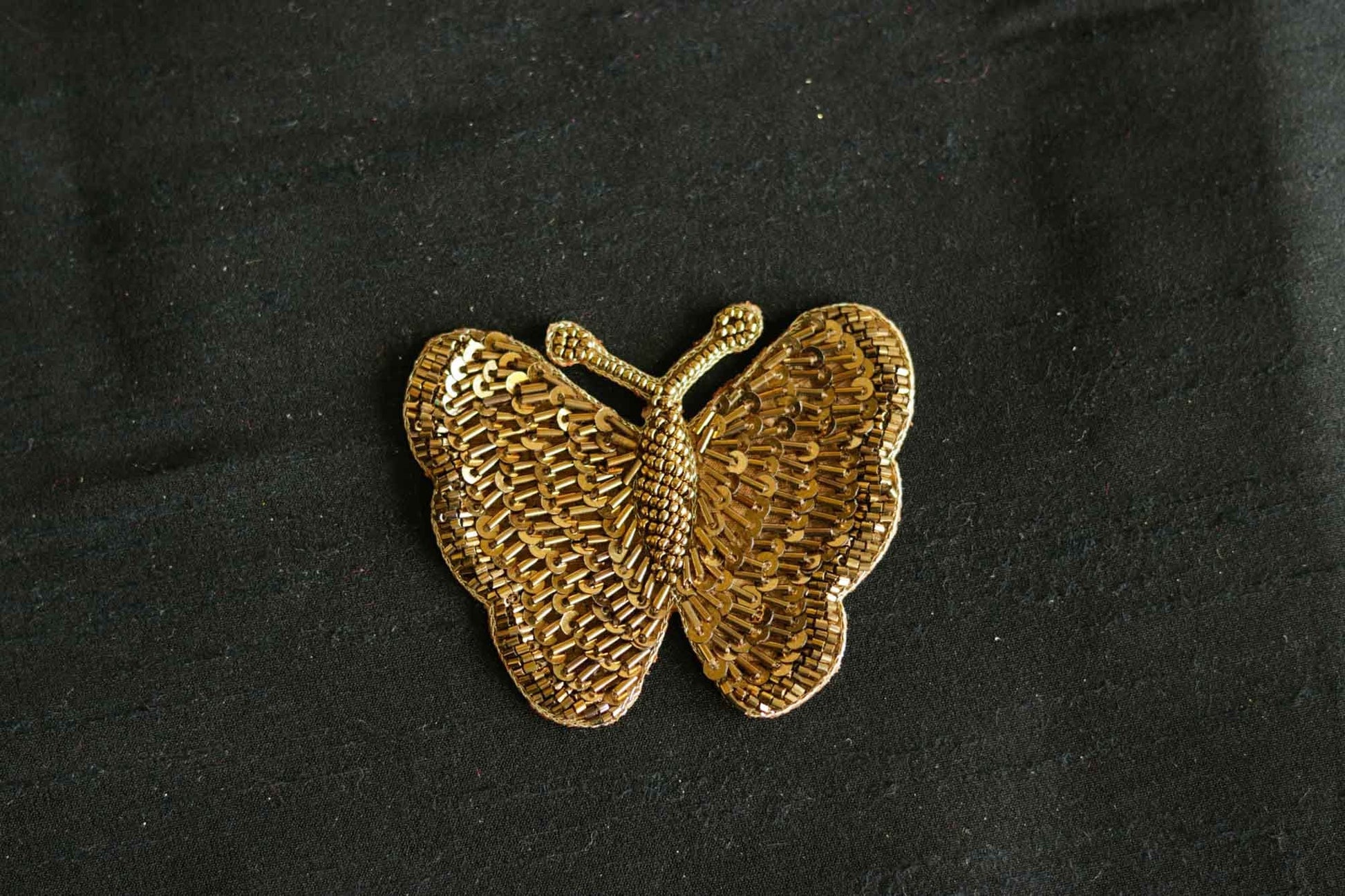 This gorgeous handmade patch captures the beauty of a butterfly. Created with delicate sequins and beads in different shades of gold. Each detail of the butterfly brought out with love and with different elements. Adding just the right amount of sparkle to your day.