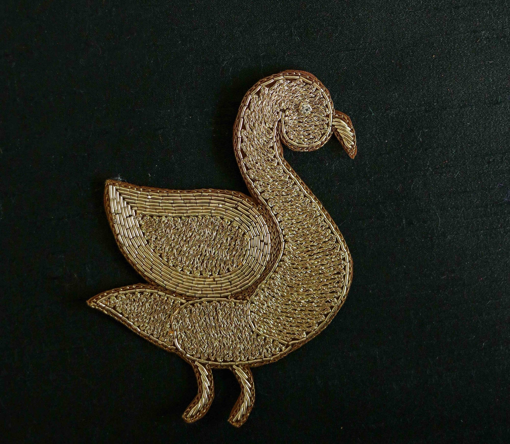 Golden Duck embroidered patch,Handmade Duck applique,Golden Indian bird zari patch,Sew on applique,Boho DIY Bird Patch