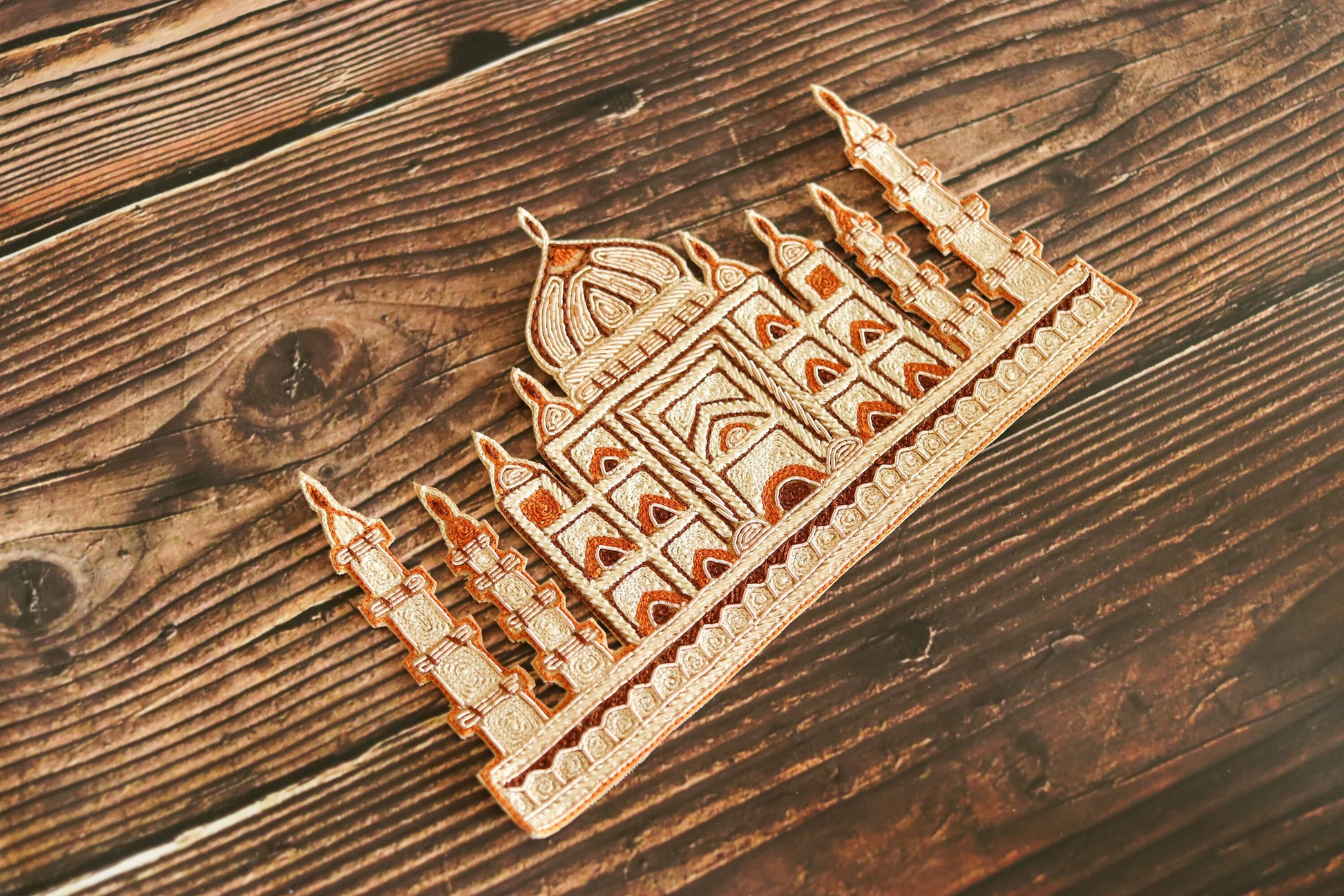 Golden Palace Embroidered Patch,Handmade Taj Mahal Applique, Royal Palace Beige Gold Cutwork Patch,DIY Costume Dress Patch