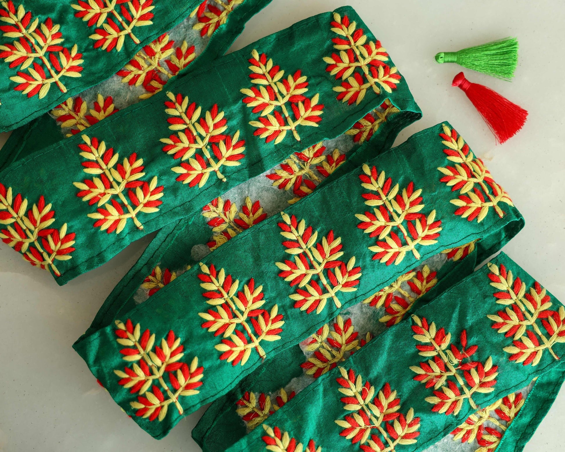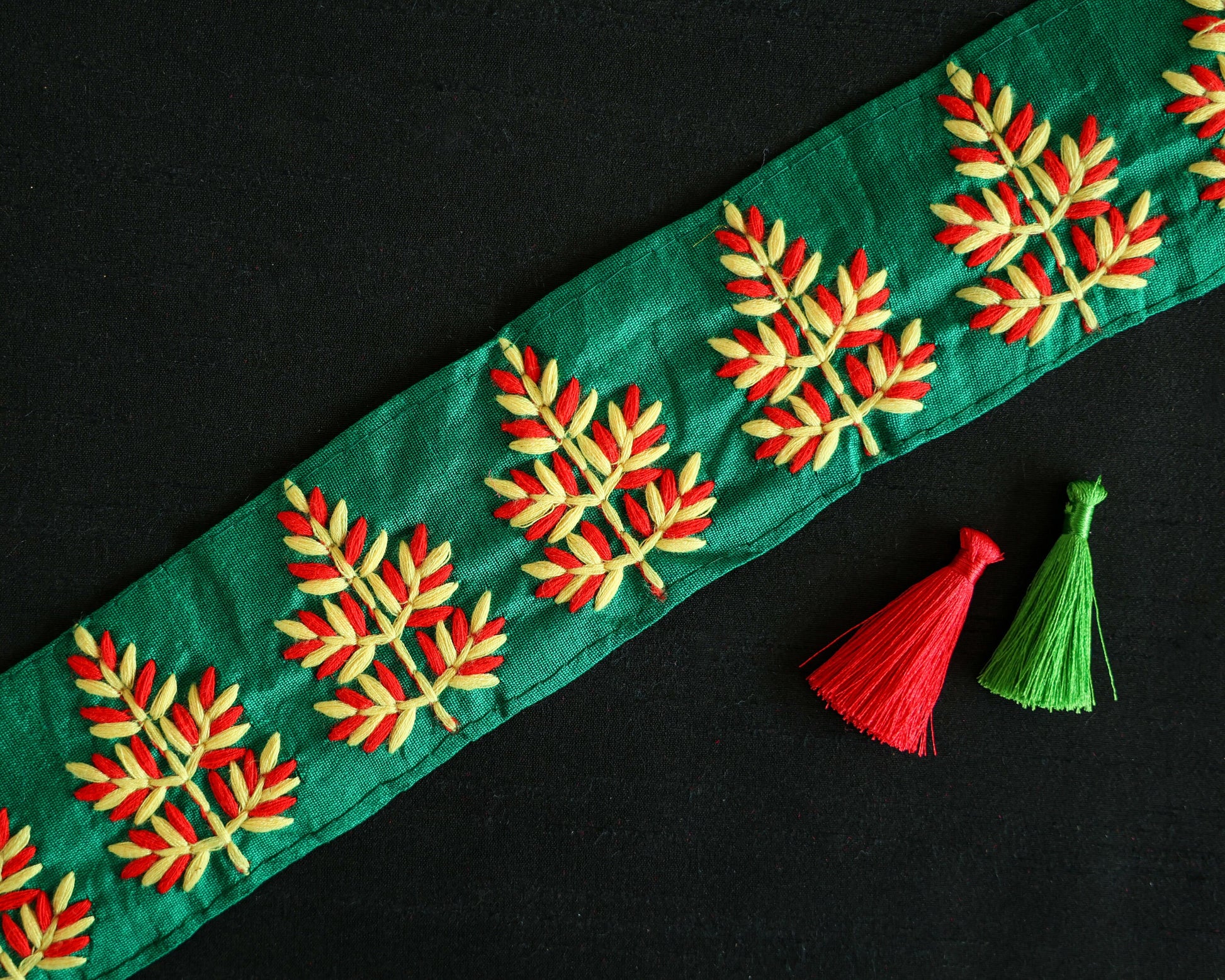 Green Red Christmas Tree Trim,Green Embroidered Border,Green Yellow Red Tree Lace,Christmas Supply,Green Saree Border,Price/mtr