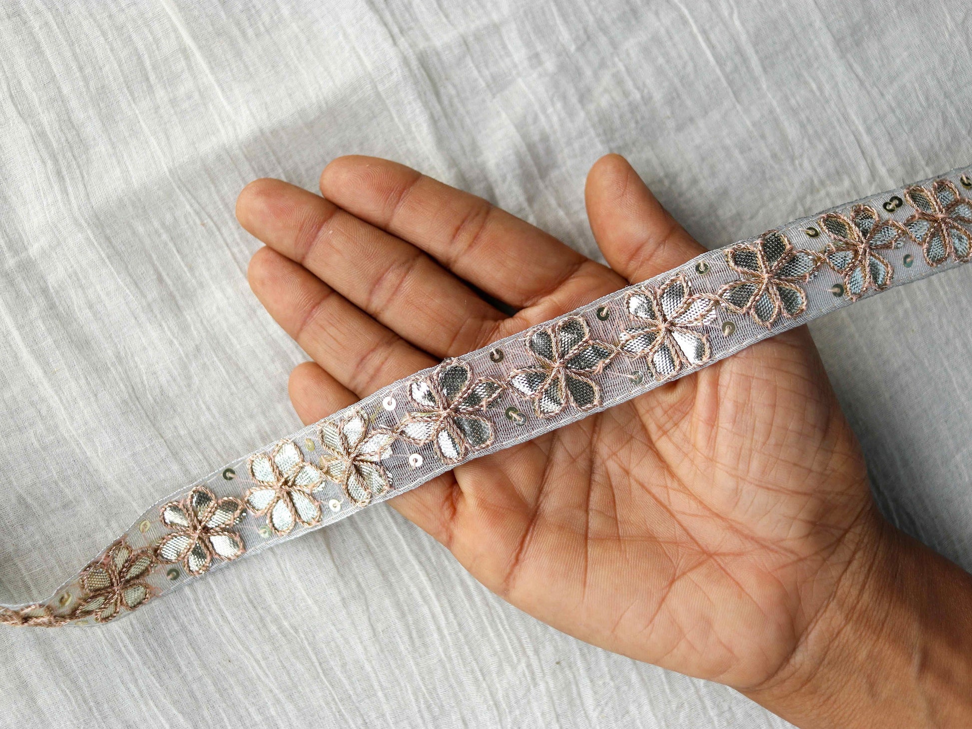Grey Gold Floral Embroidered Trim,Gold Gota Floral Border,Gota Floral Lace,Bridal Saree Border,Indian Fabric Trim,Price/mtr