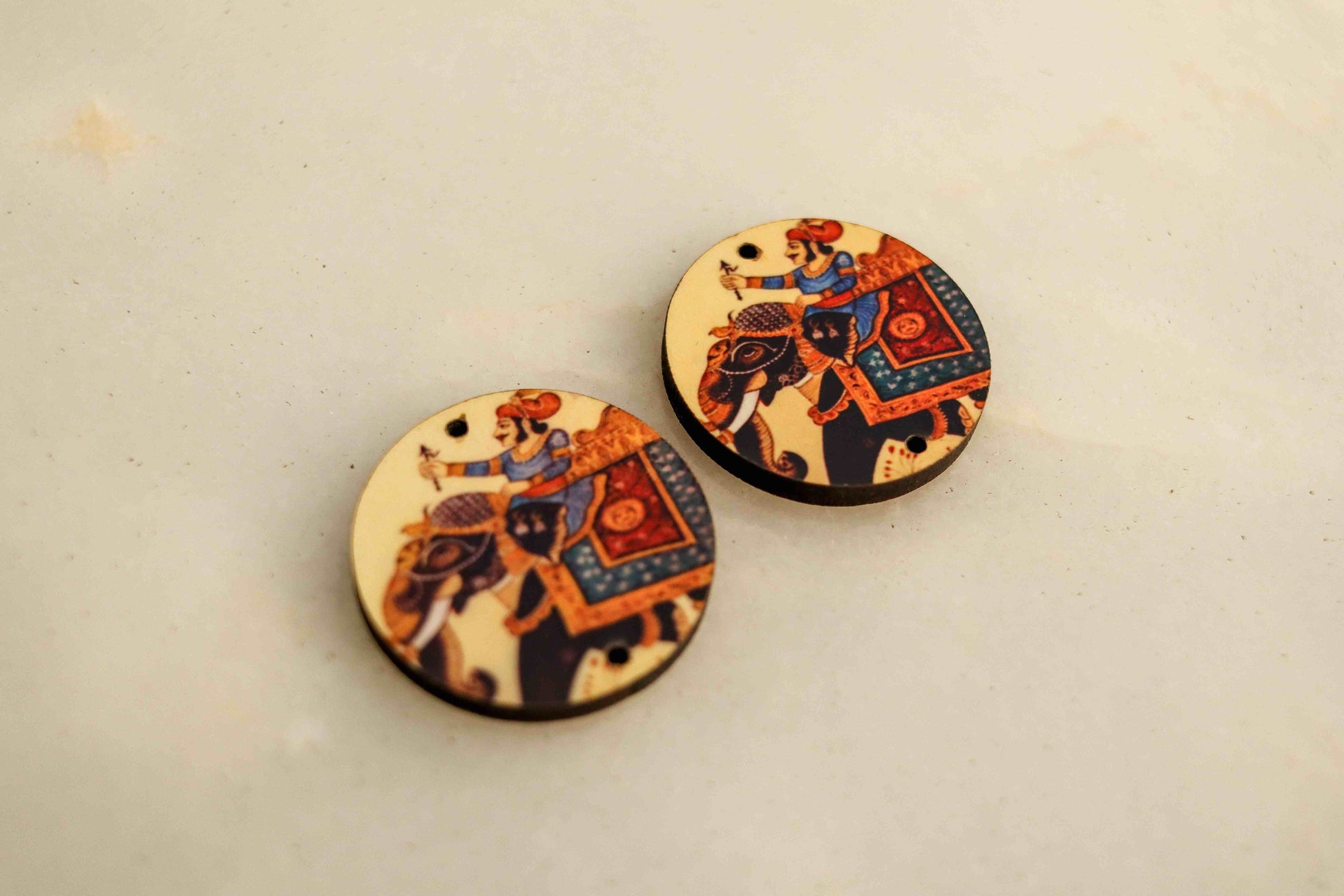 Indian King Digital Print Buttons,Royal Print Button, Emperor Elephant Print Charm,Indian Jewellery Charm,Exotic Boho Buttons,2 pcs
