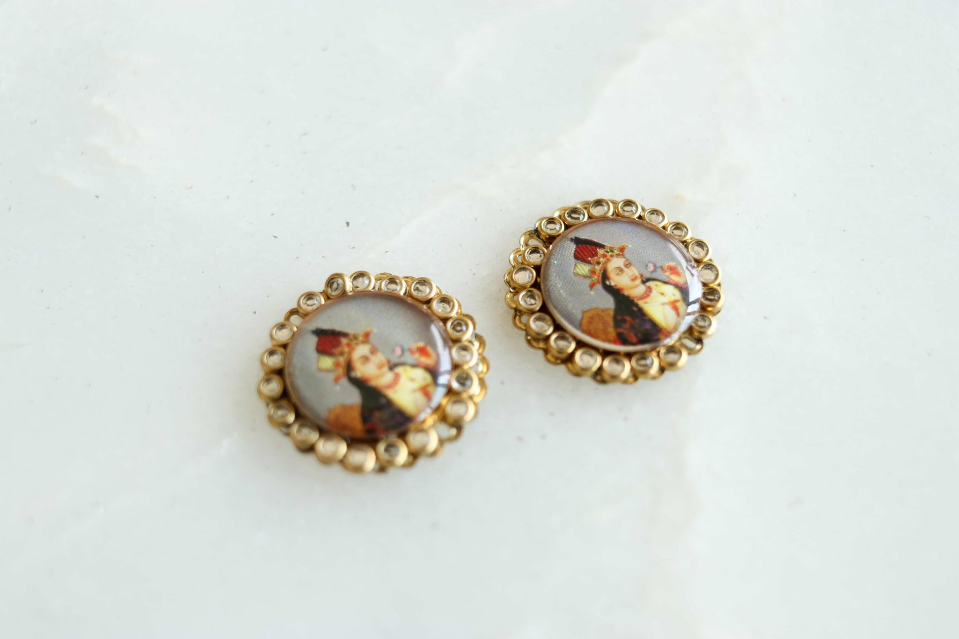 Indian Princess Digital Print Buttons,Royal Print Button,Sepia Princess Print Charm,Indian Jewellery Charm,Exotic Boho Buttons,2 pcs