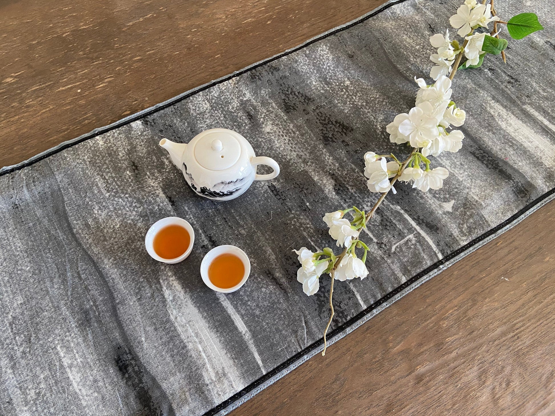 Meera – Grey Linen Table Runner,Handmade Indian Table Runner,Indian Décor,Hindu Princess Print Table Cloth,Grey Designer Linen Runner