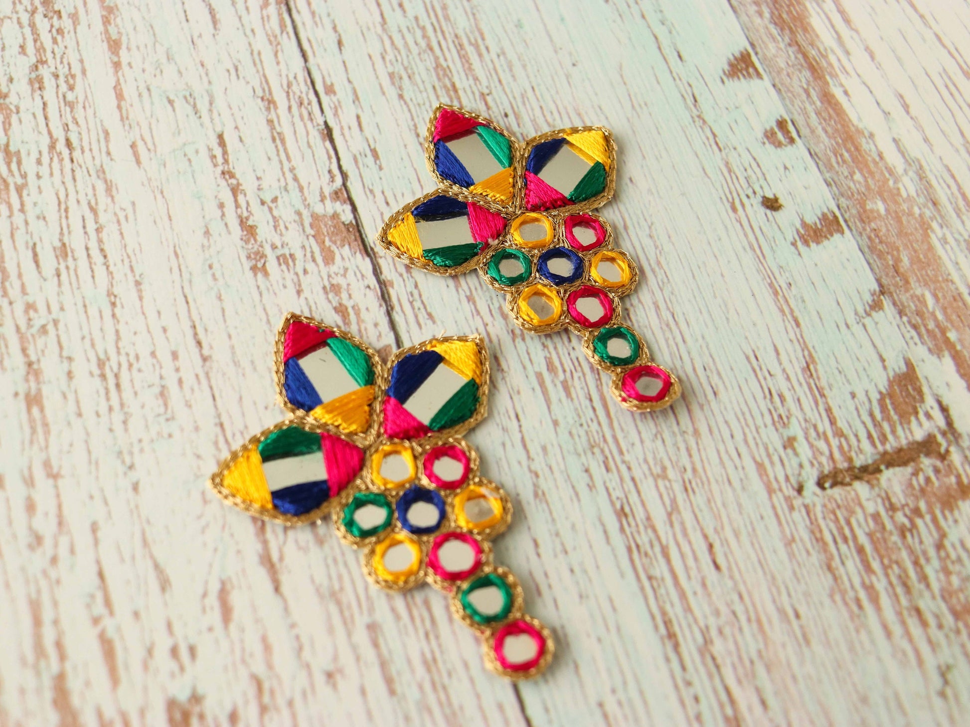 Multicolour Kutchi Mirror Embroidered Patch,Handmade Mirror Sequin Applique, Vibrant Boho Tribal Banjara Mirror Embroidery Patch,2 pcs