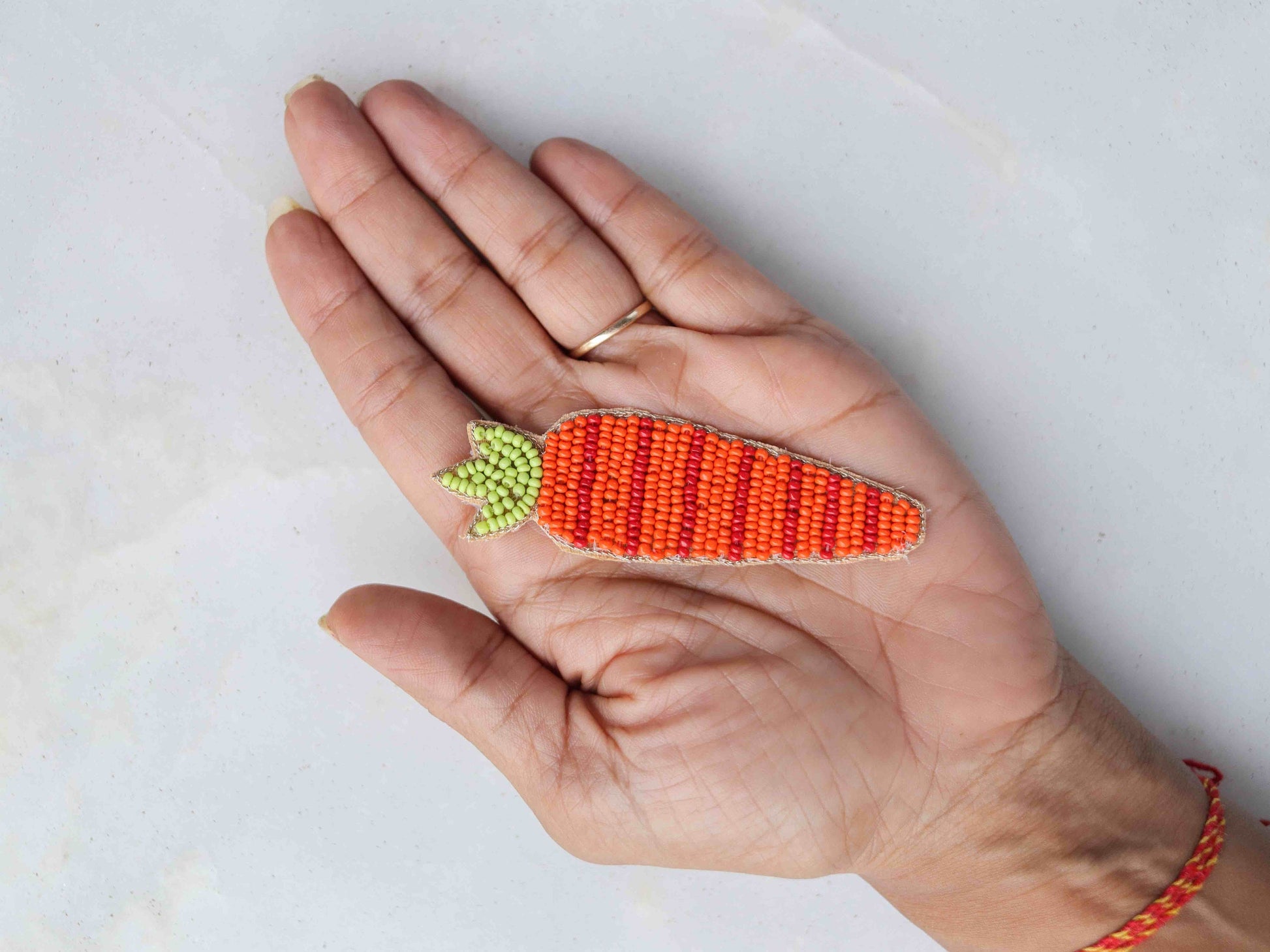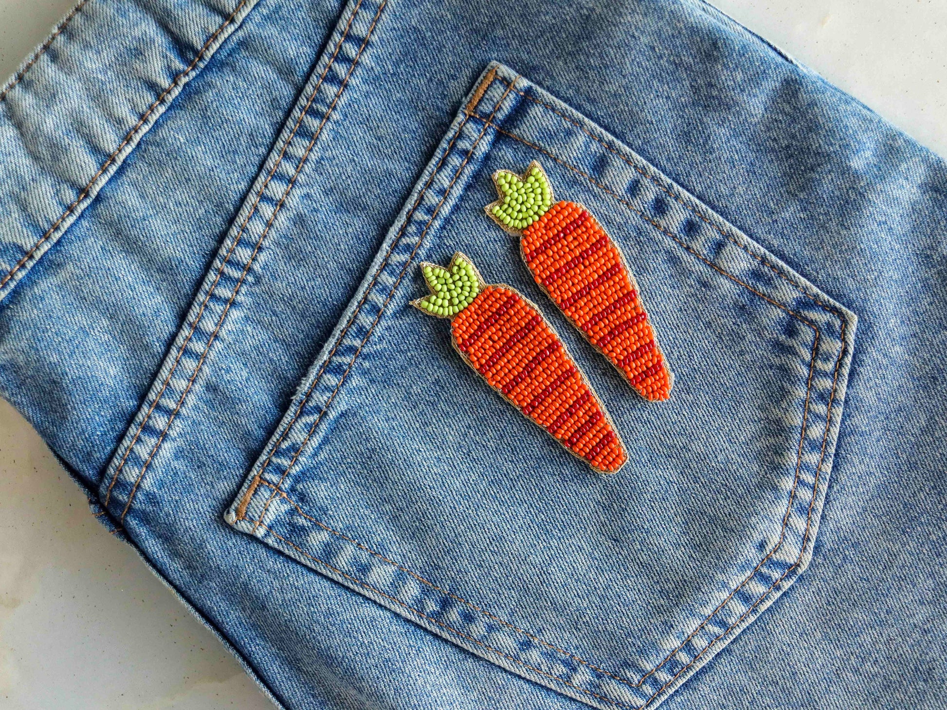 Orange Carrot Beaded Patch,Handmade embroidered applique,Carrot Applique,Quirky Fun Vegetable patch,Denim Patch,Sew on applique,DIY Patch