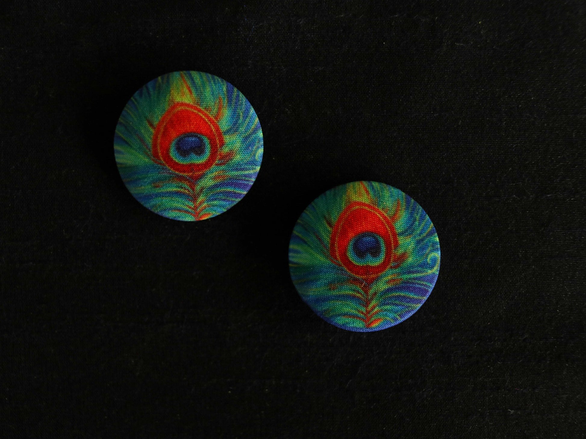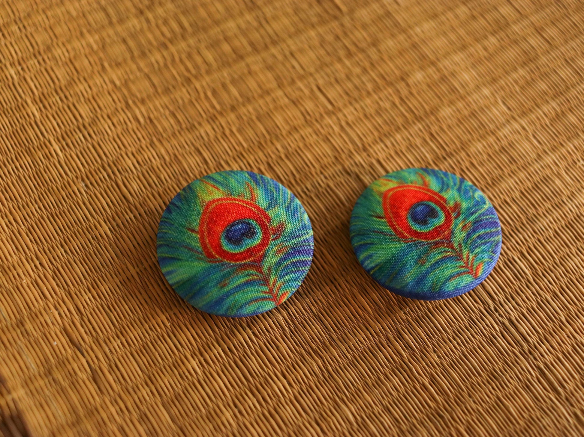 Peacock Feather Printed Fabric Button,Handmade Digital Print Button Charm,Bird Feather Button,Sherwani Kurta Button,Tribal Button,2 pcs