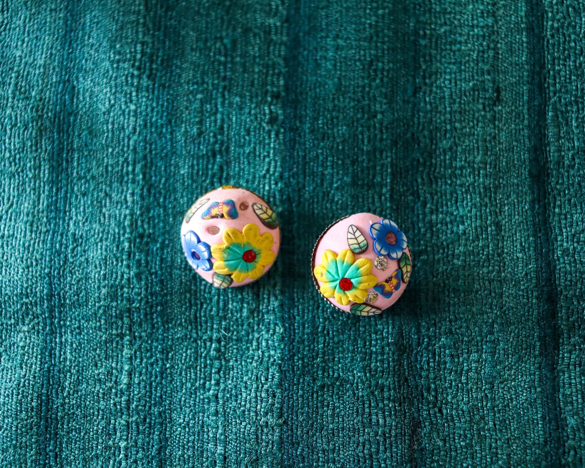 Pink Yellow Floral Resin Buttons, Handmade Cute Quirky Resin Buttons, 3D Miniature Floral Charms, Jacket Tote Bag Sherwani Buttons
