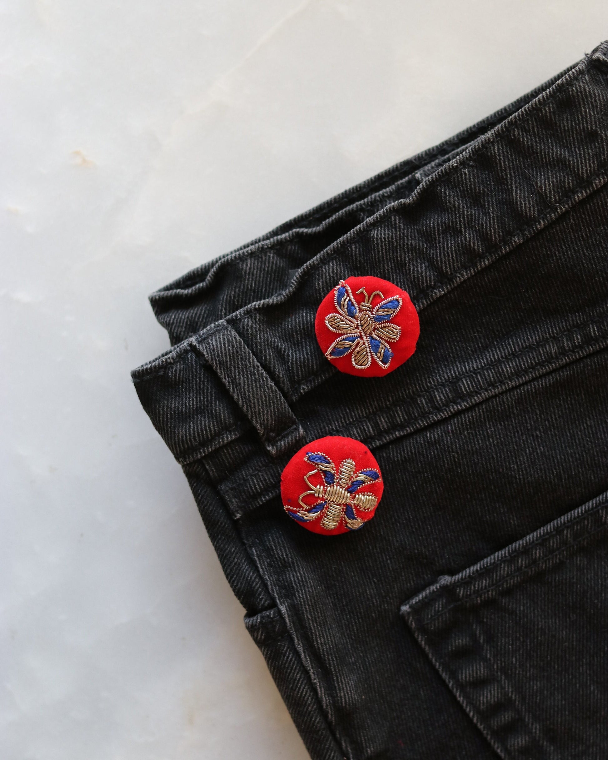 Red Blue Butterfly Velvet Button,Handmade Embroidered Button,Velvet Charm,Red Gold Butterfly Button,Sherwani Button,Wedding Button,2 pcs