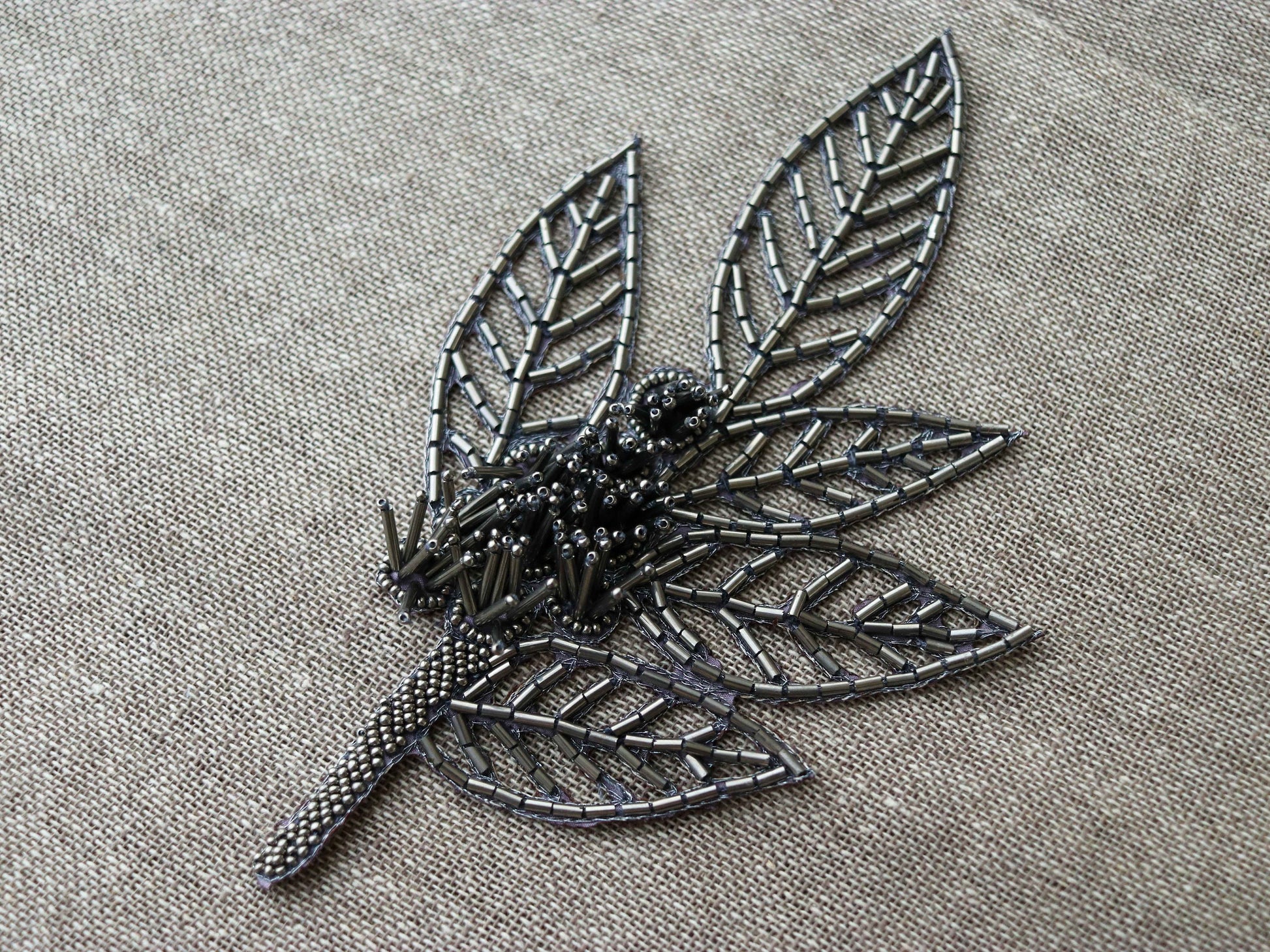 Created with many small beads in old silver, in different shapes - small beads, long tubes, slender pipes. With some even standing tall in the centre, to give a 3 D effect to the applique. All sewn together with delicate embroidery and intricate cutwork. Which makes it look like it's embroidered directly onto your fabric. And converts any piece you use it on into a masterpiece!