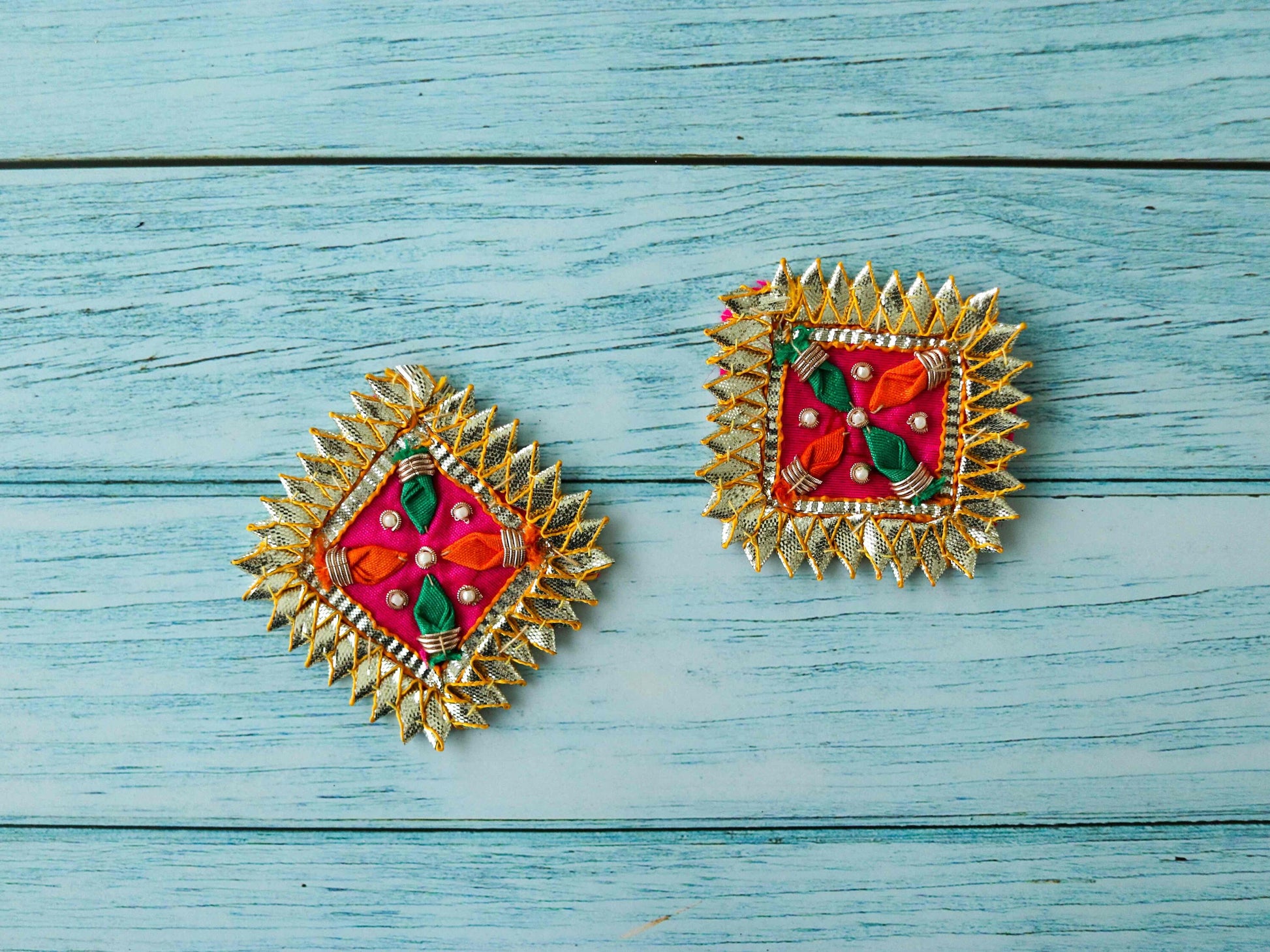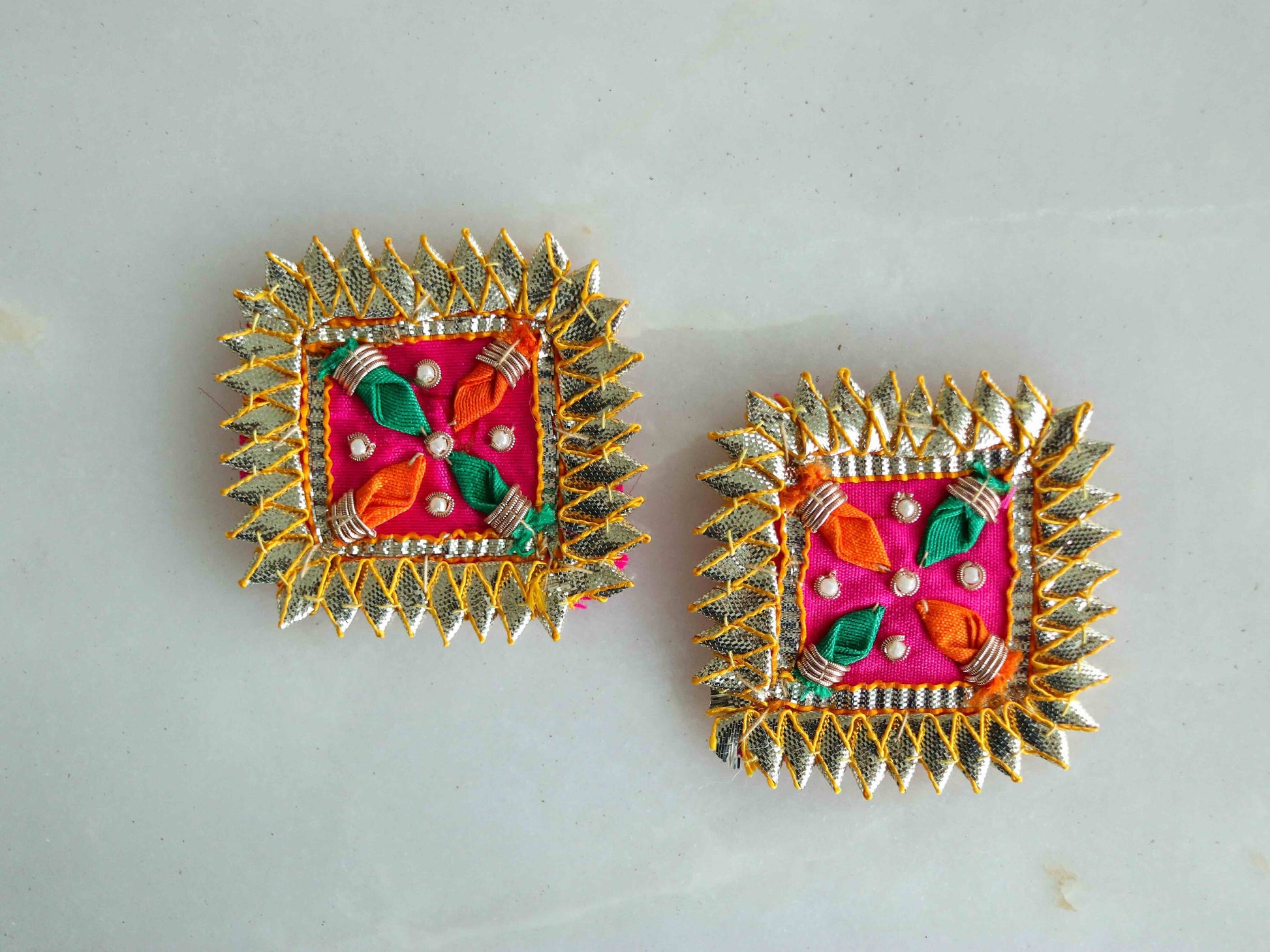 Square Pink GOld Embroidered Patch,Indian Handmade Gota Applique, Gold Foil colourful festive Kutchi patch,DIY Patch