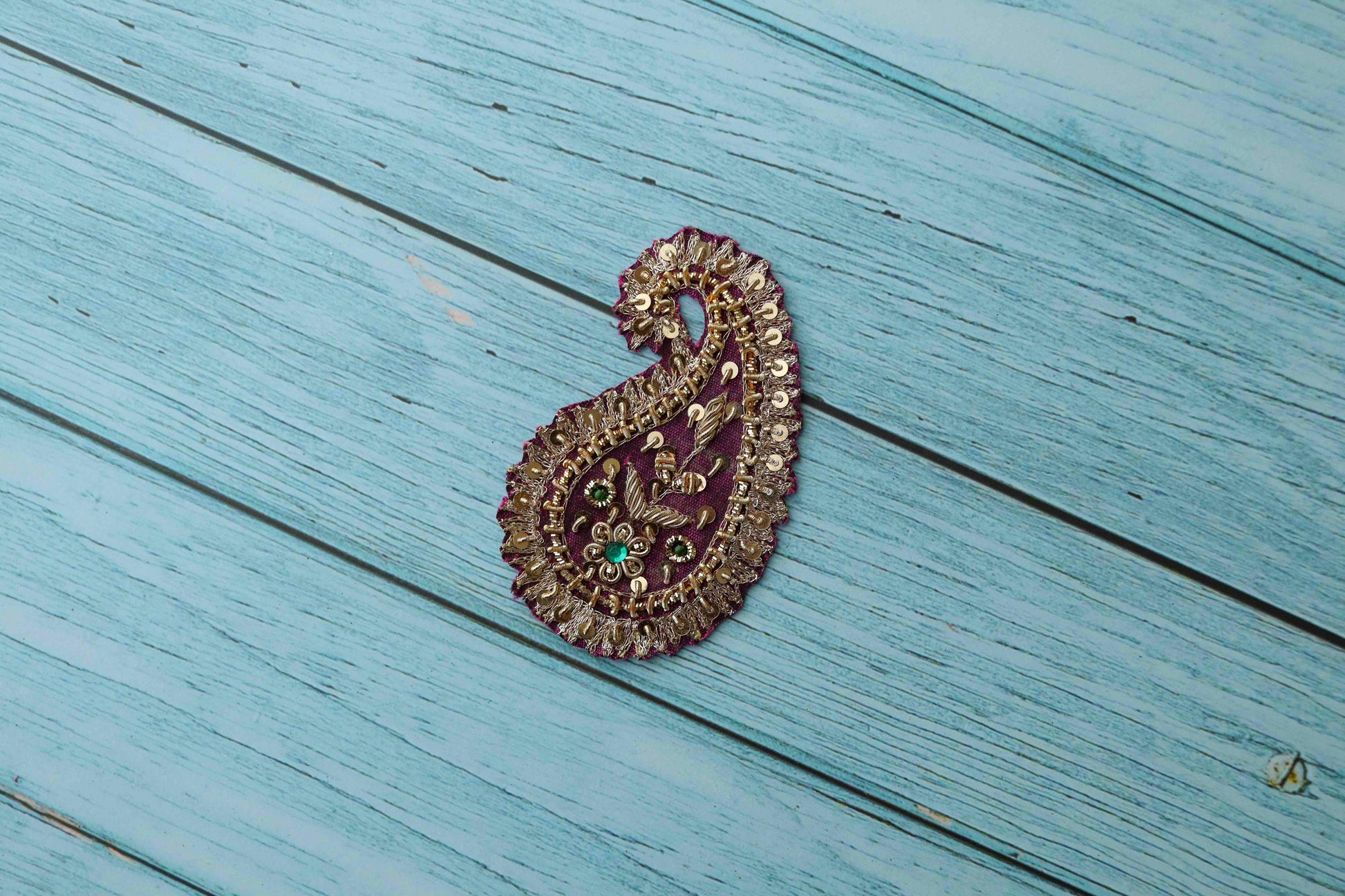 Vintage Pink Paisley Embroidered patch,Handmade Pink Gold Beaded Paisley applique, Pink Gold Sequin patch,Bridal Kairi Mango DIY Patch