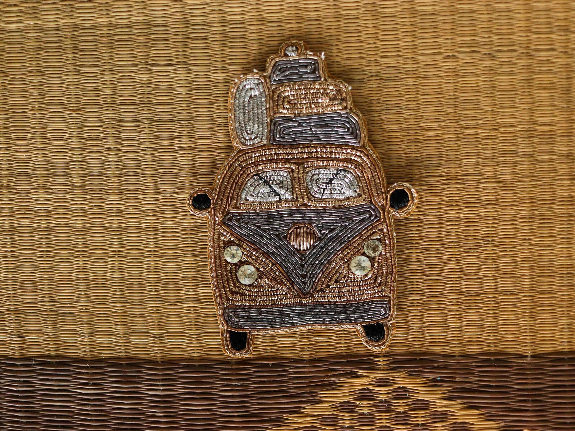 Vintage Van Quirky embroidered patch,Handmade Golden Car Vehicle applique,Boho patch,Holiday Travel Costume Denim Sew on DIY Patch