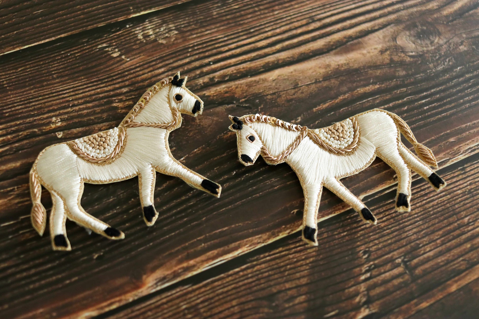 White Gold Embroidered Horse Patch,Handmade embroidered applique, White Horse Patch,Animal patch,Costume Denim DIY Patch,Sew on applique