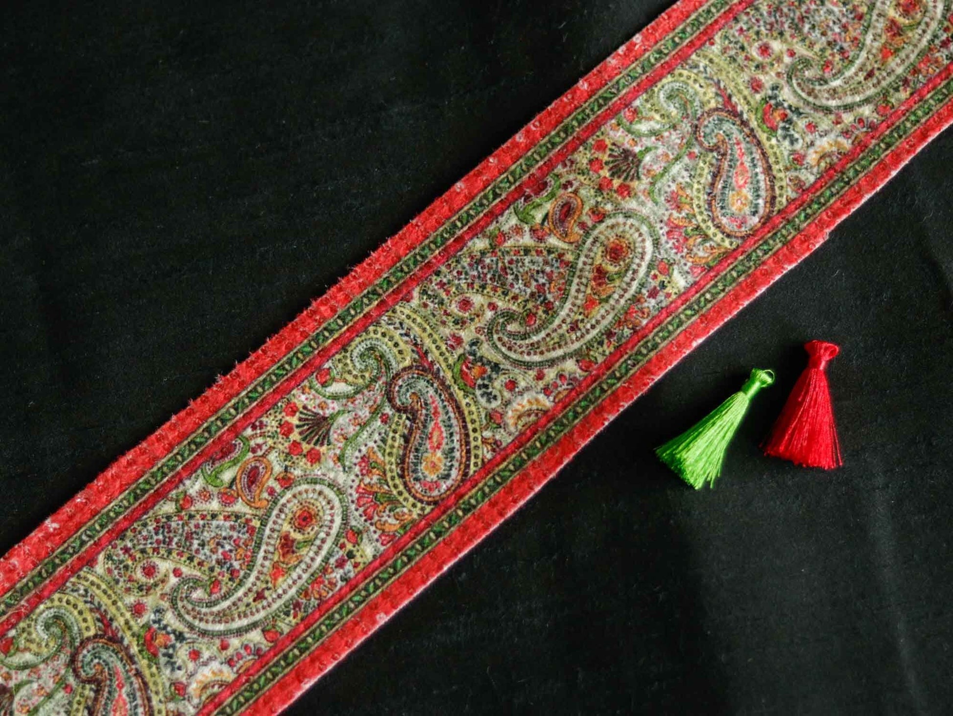 White Red Paisley Sequin Trim,Digital Print Border,Self Sequin Embroidered Lace,Boho Trim,Indian Fabric Saree Border,Price/mt,インド刺繍リボン